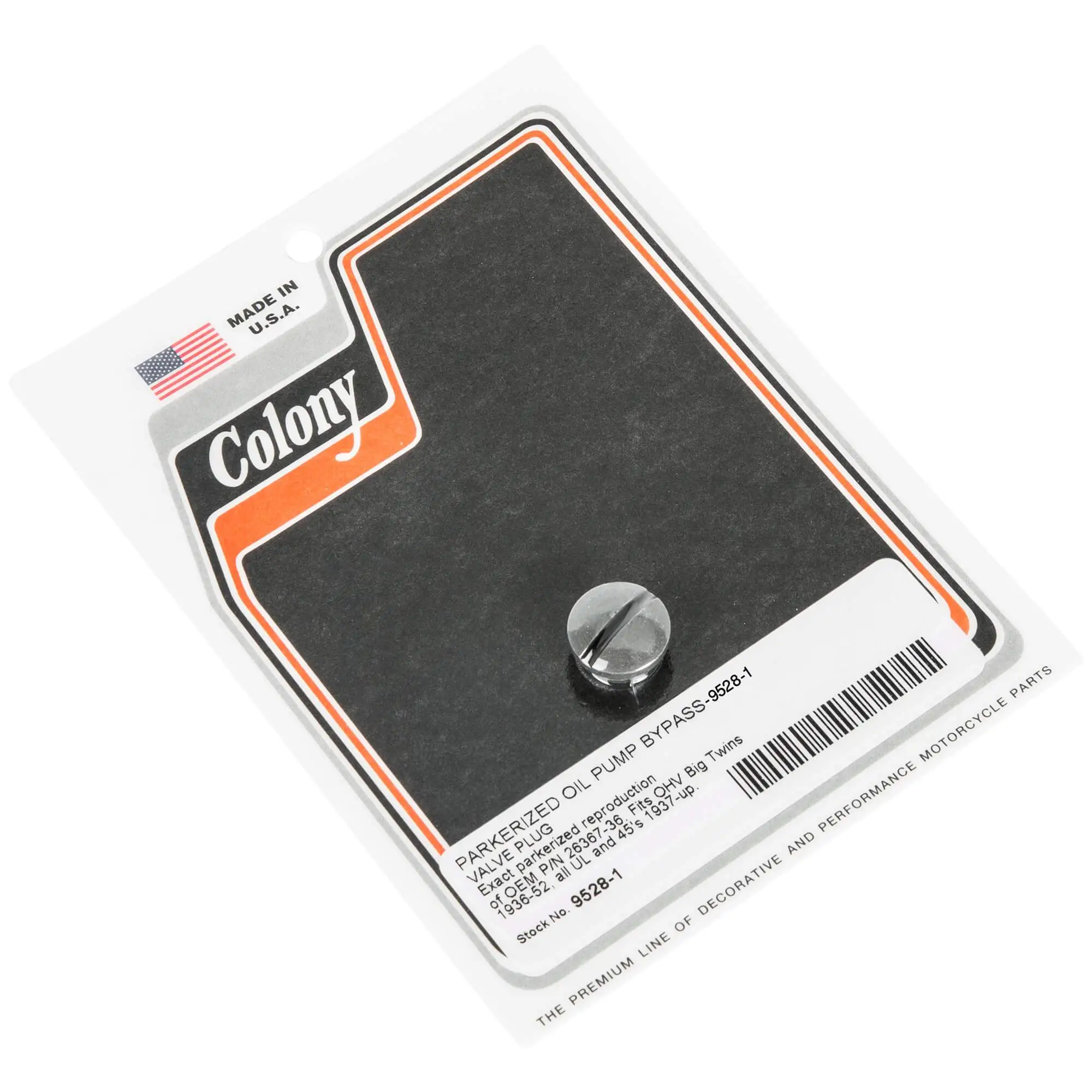 Colony #9528-1 Oil Pump Bypass Valve Plug Parkerized Harley OHV Big Twins 1936-52 OEM 26367-36
